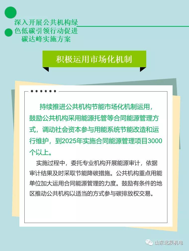 (三)積極運用(yòng)市場化機制。持續推進公(gōng)共機構節能(néng)市場化機制運用(yòng),鼓勵公(gōng)共機構采用(yòng)能(néng)源托管等合同能(néng)源管理(lǐ)方式,調動社會資本參與用(yòng)能(néng)系統節能(néng)改造和運行維護,到2025年實施合同能(néng)源管理(lǐ)項目3000個以上。實施過程中(zhōng),委托專業機構開展能(néng)源審計,依據審計結果及時采取節能(néng)降碳措施。公(gōng)共機構重點用(yòng)能(néng)單位加大運用(yòng)合同能(néng)源管理(lǐ)的力度。鼓勵有(yǒu)條件的地區(qū)推動公(gōng)共機構以适當的方式參與碳排放權交易。