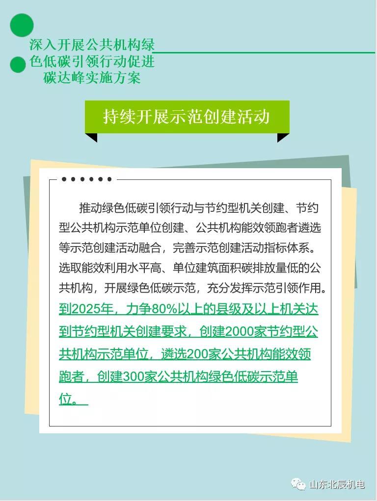 (三)持續開展示範創建活動。推動綠色低碳引領行動與節約型機關創建、節約型公(gōng)共機構示範單位創建、公(gōng)共機構能(néng)效領跑者遴選等示範創建活動融合,完善示範創建活動指标體(tǐ)系。選取能(néng)效利用(yòng)水平高、單位建築面積碳排放量低的公(gōng)共機構,開展綠色低碳示範,充分(fēn)發揮示範引領作(zuò)用(yòng)。到2025年,力争80%以上的縣級及以上機關達到節約型機關創建要求,創建2000家節約型公(gōng)共機構示範單位,遴選200家公(gōng)共機構能(néng)效領跑者,創建300家公(gōng)共機構綠色低碳示範單位。